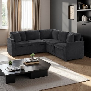 • This multifunctional L-shaped sectional sofa brings style and smart space-saving solutions to modern homes. Its smooth pull-out sleeper converts effortlessly into a bed, while the hidden storage compartment helps keep your essentials tidy.