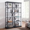 Mixing materials and style influences, this industrial bookcase is an eye-catching design that works in rustic, urban, and contemporary settings. It boasts 5-wood grain shelves supported with black finish metal legs and braces that add to its rugged look. Lovely in your bedroom, living area or home office, this bookcase is offered in multiple sizes and includes an open back and X-cross brace that combine to create a versatile display and storage piece.