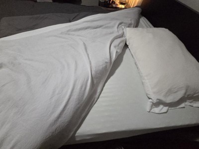 It was fun to have a little extra pillow added to the set to make it look more complete. The comforter is simple with clean lines and the decorative pillow cases matched nicely. The sheets are designed for deep mattresses. The fitted sheet moved around a lot on my more normal mattress but I like the slightly larger than normal queen sized flat sheet. The fabric was pretty thin, but felt soft. You can tell it isn’t cotton.