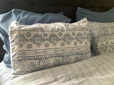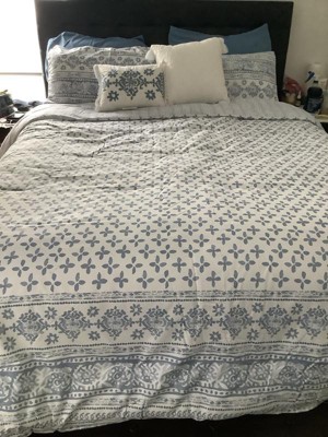 8pc Queen Block Print with Border Comforter Bedding Set Light Blue - Threshold™: Percale, Quilted, OEKO-TEX Certified