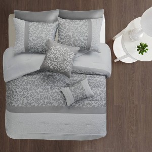 - Transitional 8 piece comforter set in quilted, printed and pintucking details