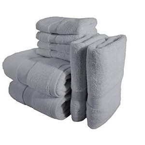 - 8-PIECE COLLECTION – This towel set includes two bath towels (27" x 54"), two hand towels (16" x 28"), and four wash cloths (13" x 13"). Each towel is crafted with 100% finer ring spun Turkish Cotton loops. Enjoy these hotel-style bathroom towels.