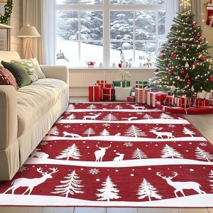 8x10 Area Rugs for Living Room, Christmas Rugs with Xmas Tree Reindeer Snowflake for Holiday Decor, Non Slip Low Pile Washable Rug for Dining Room, Bedroom, Red