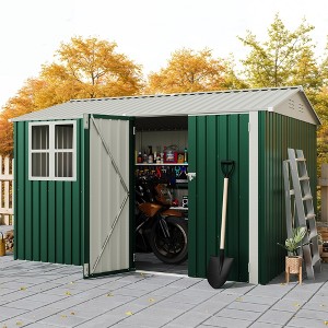 - Generous 8x10 FT Storage Space – This spacious metal shed offers 80 square feet of organized storage, ideal for lawn mowers, garden tools, bicycles, patio furniture, and seasonal outdoor equipment.