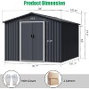 - 【VENTILATED &PITCHED ROOF】: The pitched roof allows for quick drainage of rain and snow, preventing water buildup and rust. Vents improve air circulation, ensuring proper storage and drying of wood and metal items, making this outdoor shed suitable for all weather.