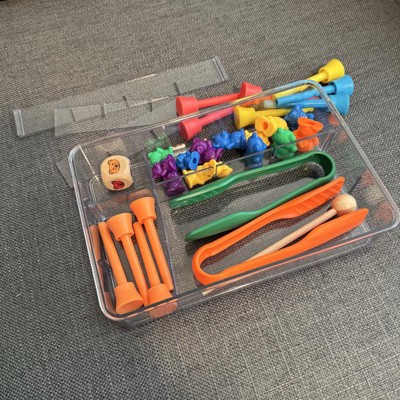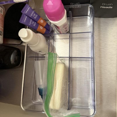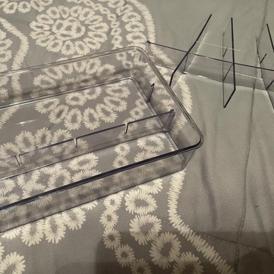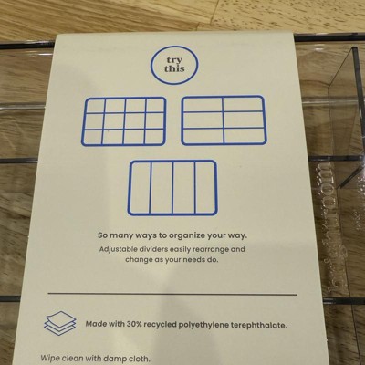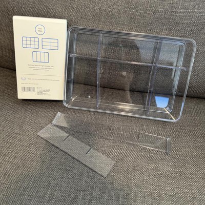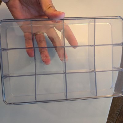 [This review was collected as part of a promotion.] I really like this tray because it’s got a clean look (I prefer clear type containers like this), has customizable dividers, and is stackable with other trays for saving space. I noticed that the short length dividers have a tendency to wobble back and forth if both long dividers aren’t in use, and one of the dividers arrived slightly bent, but I don’t feel like that took away from the function. In addition to using it for storing items, I liked to play some color sorting games with my child so I feel like there are a lot of different uses for this tray! I received an incentive to write this review.