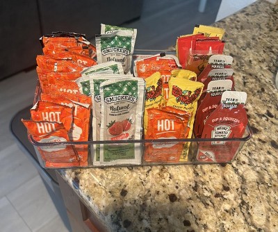 I originally purchased this to organize my hair ties, Bobby pins, small hair clips, etc. but after looking at my random condiment drawer I realized this would serve a better purpose. It’s perfect, you can just grab out the tray and leave it on the table for the family to pick out their go-to condiments! And yes we love Taco Bell in this house.