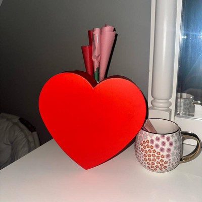 My daughter wanted to add some hearts to her room for Valentine’s Day. We found this cute heart shaped box. She’s going to keep some of her hair supplies in it. The box is not a heavy duty box but cute to hold little things or some Valentines treats for your sweetheart. I loved the size and color it adds a little happiness to her room.