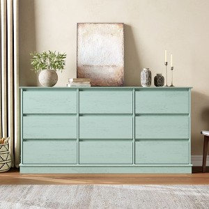 9-Drawer Dresser for Bedroom with Deep Storage Drawers, Wide-Top Double Chest, Large Horizontal Wooden Dresser for Living Room, Hallway, Green