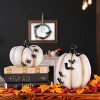 The 9 inch Halloween White Pumpkin with black stem and crawling bats is a small yet striking decorative piece that combines classic Halloween elements with a touch of eerie charm. The pumpkin itself is painted in a soft matte white finish, offering a fresh and slightly eerie twist on the traditional orange Halloween pumpkin. This white color gives it a unique, ghostly appearance, perfect for adding an unexpected pop to your Halloween décor.