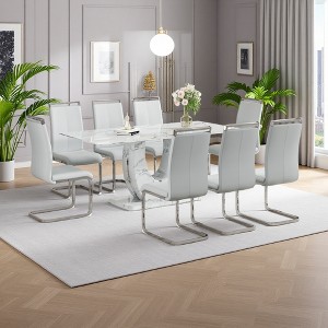 9-Piece Dining Set with Marble Pattern Table and PU Armless Chairs
