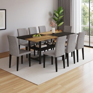 9-Piece Dining Set with Storage Table and PU Armless Chairs