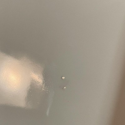 I ordered this item online for pick up and received one with several manufacturing defects in the glaze of the paint. Know what I am showing in the images is not the glue that connects the label to the bottom of the baking dish. This is the actual glaze. There are spots where it is missing lumpy, and there are even a couple of spots where, when it was finished in the kiln or whatever ovens they used to fire their glaze, it left a couple of tiny pinprick spots where the paint is missing all over. This is very disappointing and they should do a much better job of quality assurance during their manufacturing process before they release an item as being suitable for sale.