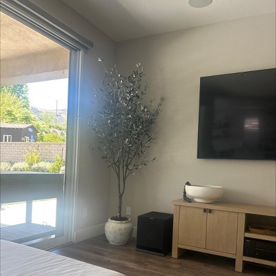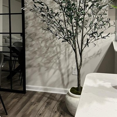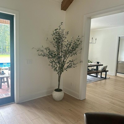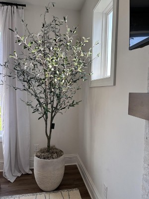 This olive tree has garnered a mix of admiration and criticism from guests. Many appreciate its height, fullness, and realistic appearance, making it a stunning addition to various spaces. The pot's design and quality have also received positive remarks. However, some guests have noted concerns about the white undersides of the leaves and the overall appearance of the pot, which they feel detracts from its value. Despite these issues, the tree is often described as a beautiful statement piece that enhances home decor.