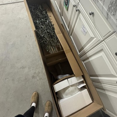 Securely packaged, nothing broken or chipped, thank you Threshold! Its a beautiful tree, i need to be better at fluffing/separating the leaves, but this fulfilled my olive tree dream, as i always wanted an artificial one for my room. Tall, plenty of leaves, doesn’t look skimpy like other faux olives tend to be, pot is pretty and neutral too, will be a great staple for any room/season!