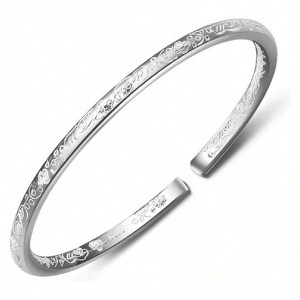 999 Solid Sterling Silver Bangle Cuff Bracelets for Women,The best choice to give to women or lovers during festivals.