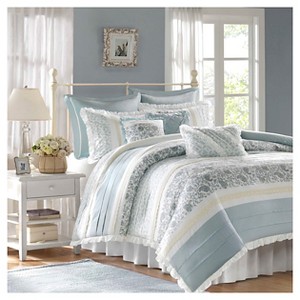 9pc Queen Stella Duvet Set - Blue: Madison Park, Cotton Percale, OEKO-TEX Certified, Vintage Style