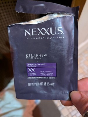 Nexus Keraphix is my latest favorite shampoo & conditioner, so purchasing the mask was an easy decision. I love the smell, and I love that it rinses easily. I have natural curly hair and blow dry and flat iron my hair every other day after using this mask, my hair feels silky and smooth. The only complaint that I would have is that they come in a tiny little envelope because you can get more than one use you have to fold the top to prevent any leakage and wedge between other products to stay upright other than that this is definitely a repeat purchase and recommend recommended.