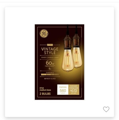 [This review was collected as part of a promotion.] I received GE vintage 60W Replacement LED light bulbs amber Edison style st19 medium base free in exchange for my review. Great vintage looking bulb with great light. Long lasting and uses very minimal electricity.
