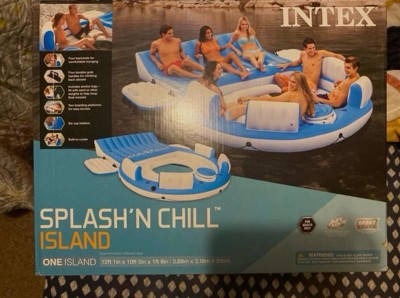 Intex 56299EP 145 x 125 x 20 Inch Splash N Chill Inflatable Lake and Pool Relaxation Island Lounger Seat for up to 7 Adults, Blue and White