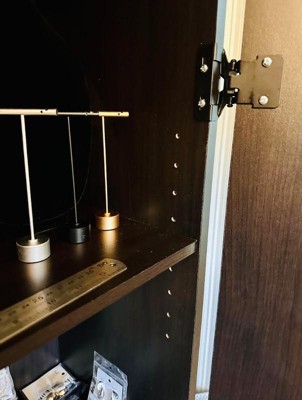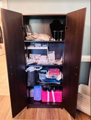 [This review was collected as part of a promotion.] I got this cabinet to use in our bedroom for shoes and accessories. But I love how versatile it can be. My husband wanted to use it in the kitchen for an extra pantry. The color espresso is such a pretty deep brown. The assembly wasn’t any problem at all with very good instructions. I is definitely heavy and I really like the two extra adjustable shelves. It comes with a wall anchor that secures it to the wall and I Highly recommend using it! When both doors are open without the anchor the cabinet falls forward and could easily cause an injury. Overall I really love it!