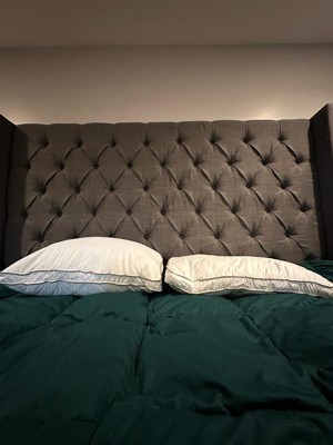 [This review was collected as part of a promotion.] Absolutely love these pillows! Make sure that you fluff the pillows as instructed on the packaging. In my picture, the pillow on the left is fully fluffed and super comfortable. The pillow on the right is straight out of the packaging so you can see the difference on how flat it is compared to the fluffed pillow. These are really comfortable to sleep in and my head sinks into the in a good way. They almost cradle your head for a very relaxing sleep.