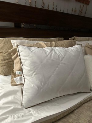 I received these pillows for free from the Hey, Bullseye™ sampling program in exchange for my honest review. They are really nice pillows. I am a side / stomach sleeping and the side gussets are the perfect height for my neck. The feathers are also quite comfortable - some feather pillows are hard and these are not.