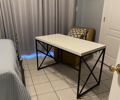 Monarch Specialties Computer Desk, Contemporary Home & Office Desk, Scratch-Resistant, 48” L, Glossy White Top, Black Legs