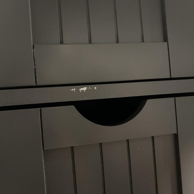 This item is very low quality- many defects to wood and paint despite adequate packaging, random hardware missing. Burdensome assembly. Almost finally done putting this piece together and resorting to using a Sharpie in attempt to correct poor finishing- unfortunately no idea how to fix rough & unmatching surfaces. Very disappointing.