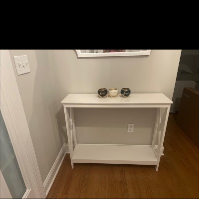 I got this entry table in white and on sale. definitely worth the $80. It relatively easy to put together however I do have a few gripes in regards to assembly. I had to drill a hole out that was not drilled through fully. Also had a lot trouble with some of the screws not biting the wood for the table top and bottom shelf which caused me to drive too far with a few of them and almost poked through the top of the table. I had to make some adjustments to get them to make firm placement into the wood with some hot glue. Overall I'm happy with it though. People love my entryway now.