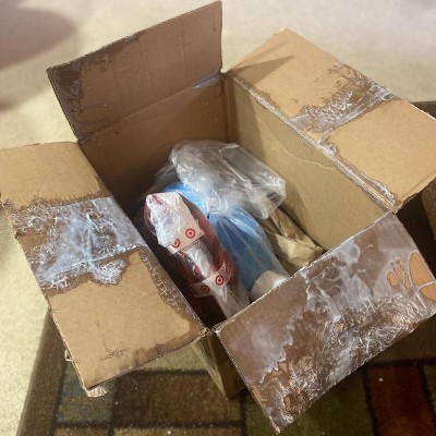 Softener is spilled in the shipping bag