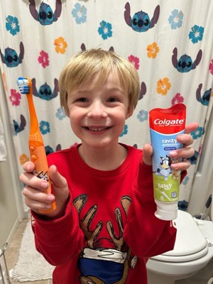 [This review was collected as part of a promotion.] We absolutelyove bluey and how fun that my kiddo got a bluey toothpaste set. This is a great starter electric toothbrush. My kid doesn't fight me and brushes