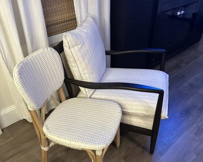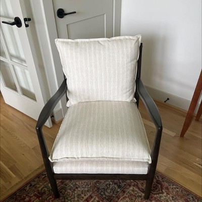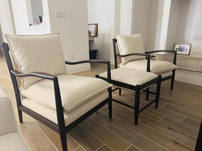 I am very much pleased with this chair from Studio McGee. I like the quality of the wood and the fabric, but most of all It is so comfortable! I didn't want to spend a lot in my living room but didn't think I would be able to purchase something this nice at this price.
