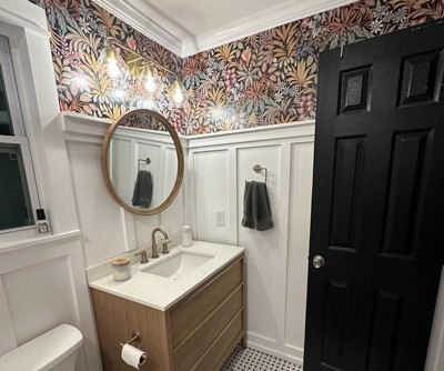 I love this print! Application was easier than I expected and turned out BEAUTIFUL! I needed two rolls for a pretty small bathroom.