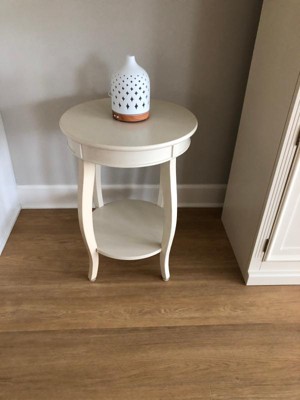 Aberta End Table White - Acme Furniture: Antique Finish, Round MDF Top, Wood Legs, Shelf Storage
