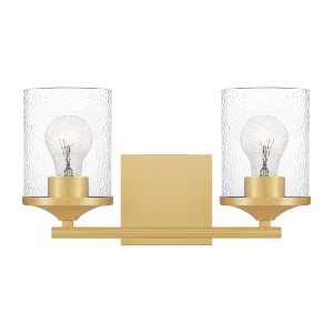 Add beautiful light to smaller spaces with the Abner series of vanity lights. Featuring clear hammered glass and sleek lines, Abner is available in a range of finishes like aged brass, matte black, and polished chrome. Proof that clean, simple design is impactful, this versatile style would work well in a variety of transitional bathroom settings.