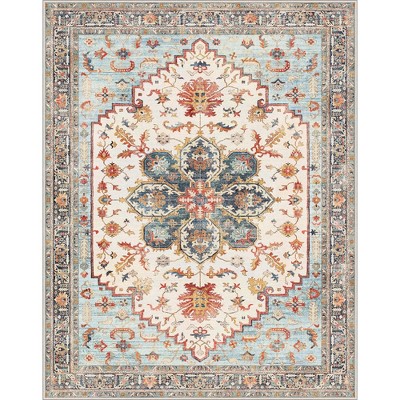 ABYNOW Vintage Harmony Floral Print Soft Low-Pile Washable 8x10 Area Rug