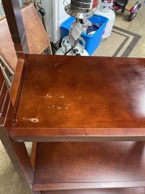 Was expecting a darker color, its has more of a reder than brown tint. It was a little flimsy so best for someone without small kids. Its nice and was easy to put together.