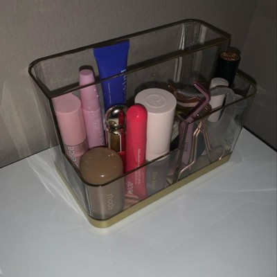 This versatile organizer is perfect for keeping various items tidy, whether in the bathroom, office, or vanity. Guests appreciate its elegant design, which features gold accents and clear plastic, making it a stylish addition to any space. While it effectively holds makeup, toiletries, and office supplies, some guests noted concerns about its durability and size. Overall, it offers a chic solution for organization without taking up too much space.