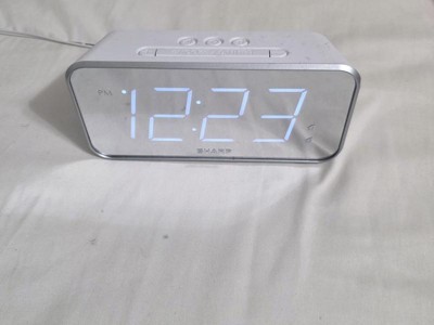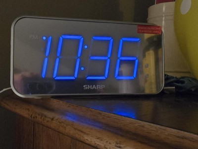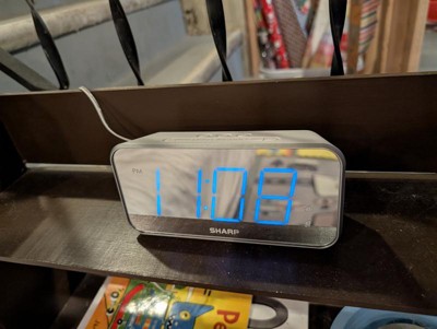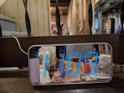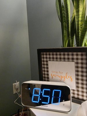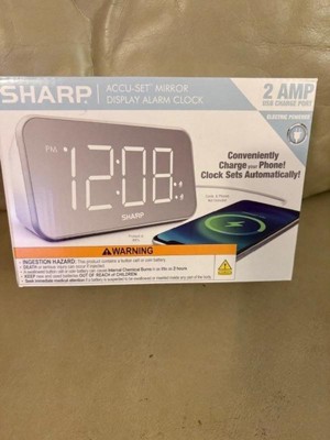 AccuSet Jumbo Mirror Display Alarm Clock White - Sharp: Modern Bedside LED Clock with USB Port