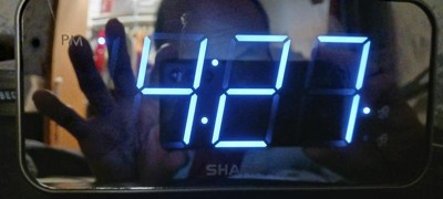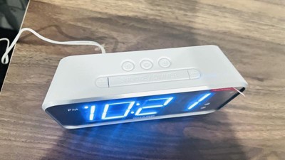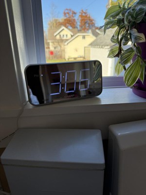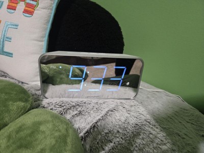 I received this clock as a member of the @target #heybullseye program in exchange for my honest review. I'm not sure im in love with the mirror look. I agree when the sun is hitting it, it makes it difficult to see, but other times, it's perfect. I think I've found my new travel clock! I can use this and charge my phone off of it having the best of both worlds! It does have dimmer settings to make it not so bright, kinda nice it its on your night stand in your face. Id recommend, but not sure id wanna use it on the daily. Oh.... the large numbers would be great for the elderly! I know we were always looking for large number clocks for my mom....3 weeks too late😭