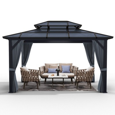 Acekool Hardtop Gazebo for Patio with Netting and Curtains, Polycarbonate Roof Canopy Aluminium Frame Pavilion