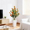 - Realistic silk flowers and PE leaves are artfully arranged for a true-to-nature appearance. The 4-foot height makes a statement in corners or beside furniture. With no need for watering or sunlight, you can enjoy lasting greenery anywhere. Assembly is quick—just set up the stem and pot. The lightweight structure allows you to move and reposition your camellia tree to freshen up any room’s look. Choose between beautiful red or bright orange blooms to complement your décor.