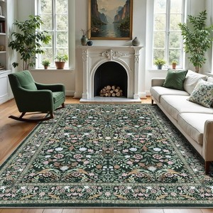 Acekool Washable Area Rug, Non-Slip Vintage Floral Low Pile Carpet for Living Room or Bedroom