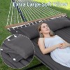 - [Premium Quilted Fabric & Pillow] Crafted from soft, two-layer quilted polyester with plush poly-fiber fill, this hammock resists fading and includes a detachable pillow for head and neck comfort.