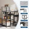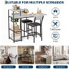 The Acekool Expandable Dining Table Set for 2 effortlessly brings style and flexibility to your home. Designed for small kitchens, apartments, or multipurpose living rooms, this three-piece set includes a space-saving bar table, two ergonomic chairs, and convenient storage shelves with a wine rack. The expandable table adapts to your needs, offering extra dining or workspace while keeping a compact profile. Open shelving below makes organizing bottles, dishes, or daily essentials simple and accessible. The chairs feature plush cushions and supportive backrests for a pleasant dining experience, and slide cleanly under the table to save space when not in use. With sturdy metal frames and a waterproof tabletop, this set is designed for lasting use and easy care—blending comfort, utility, and modern design for any small space.