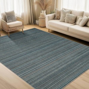 The Acekool modern neutral rug features a timeless stripe design that complements many decor styles. Its washable, low pile surface offers a soft feel, ideal for daily use in living rooms or bedrooms. Equipped with non-slip TPR rubber backing, it stays securely in place, providing added safety. The rug folds easily for convenient storage and fits well under furniture and doors. Available in 8x10 and Blue, this rug combines style, comfort, and practicality for modern homes.