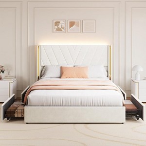 Acekool Queen Bed - LED Lights & Storage Drawers