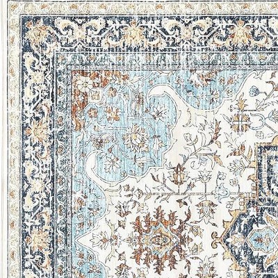 Acekool Washable Area Rug, Non-Slip Vintage Floral Carpet, Retro Machine Washable Floor Mat for Living Room, Bedroom, Entryway