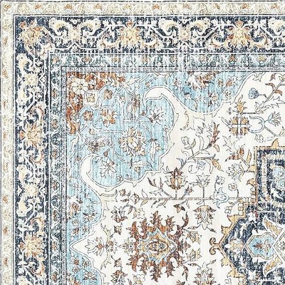 Acekool Washable Area Rug, Non-Slip Vintage Floral Carpet, Retro Machine Washable Floor Mat for Living Room, Bedroom, Entryway